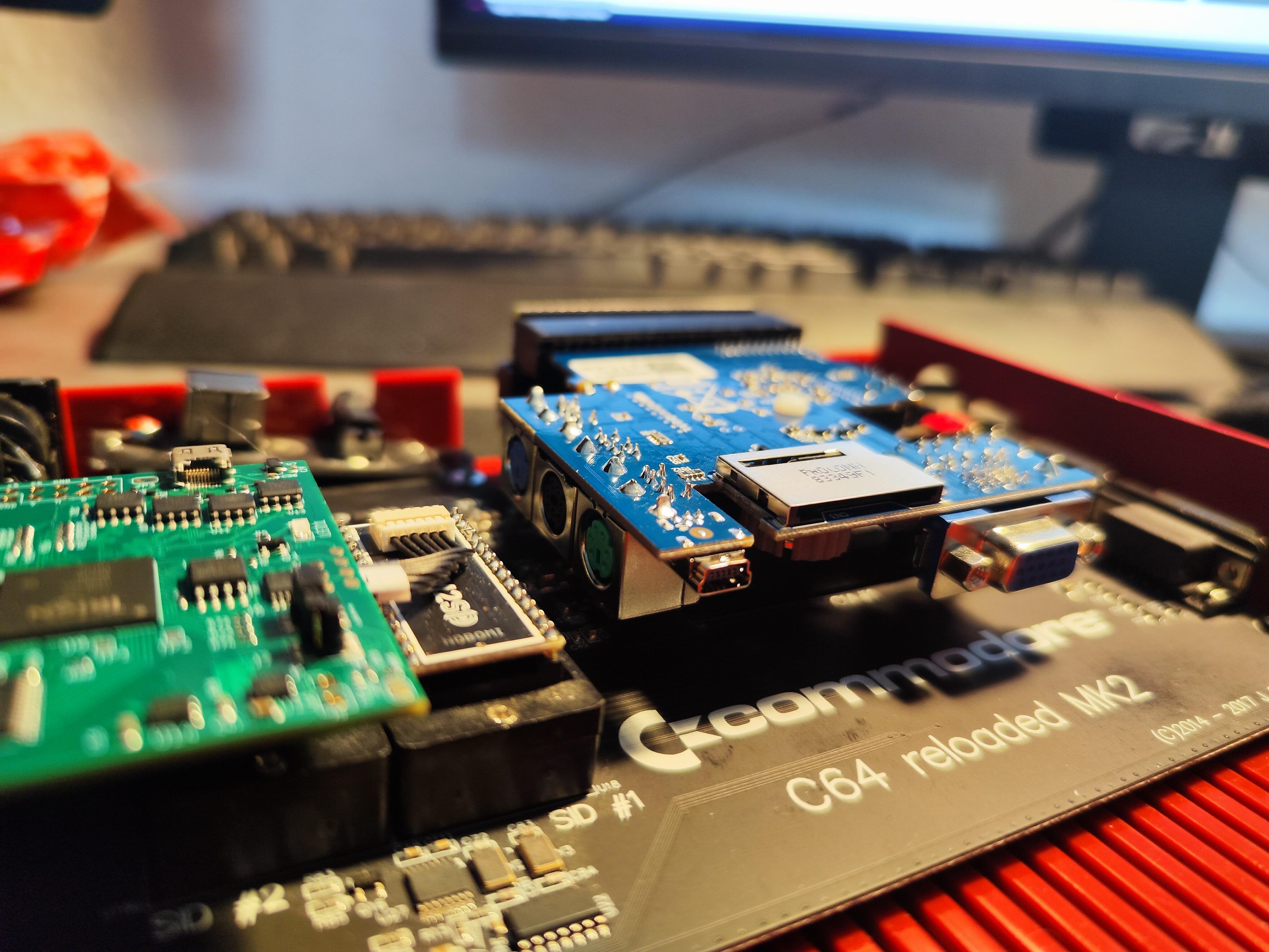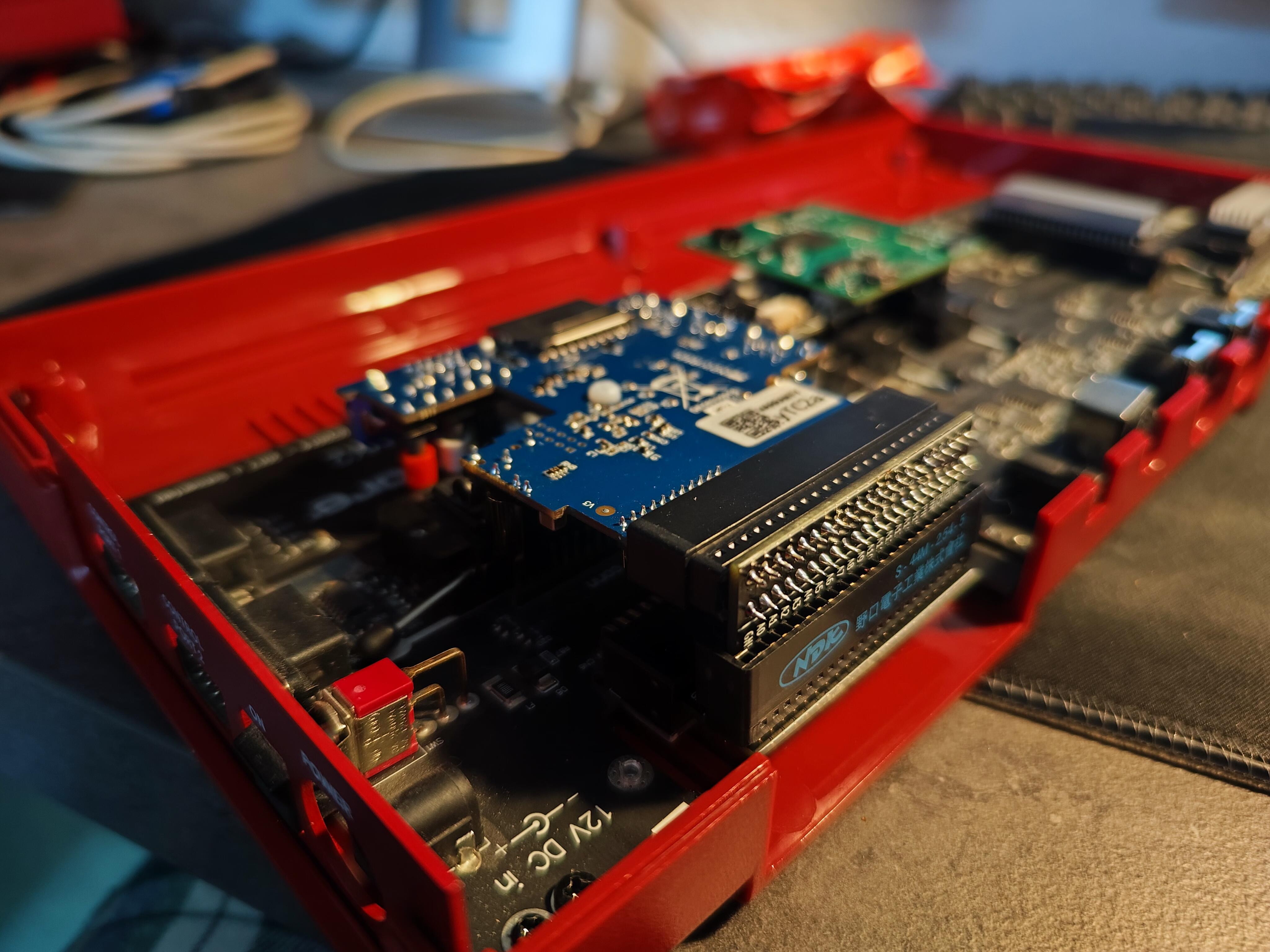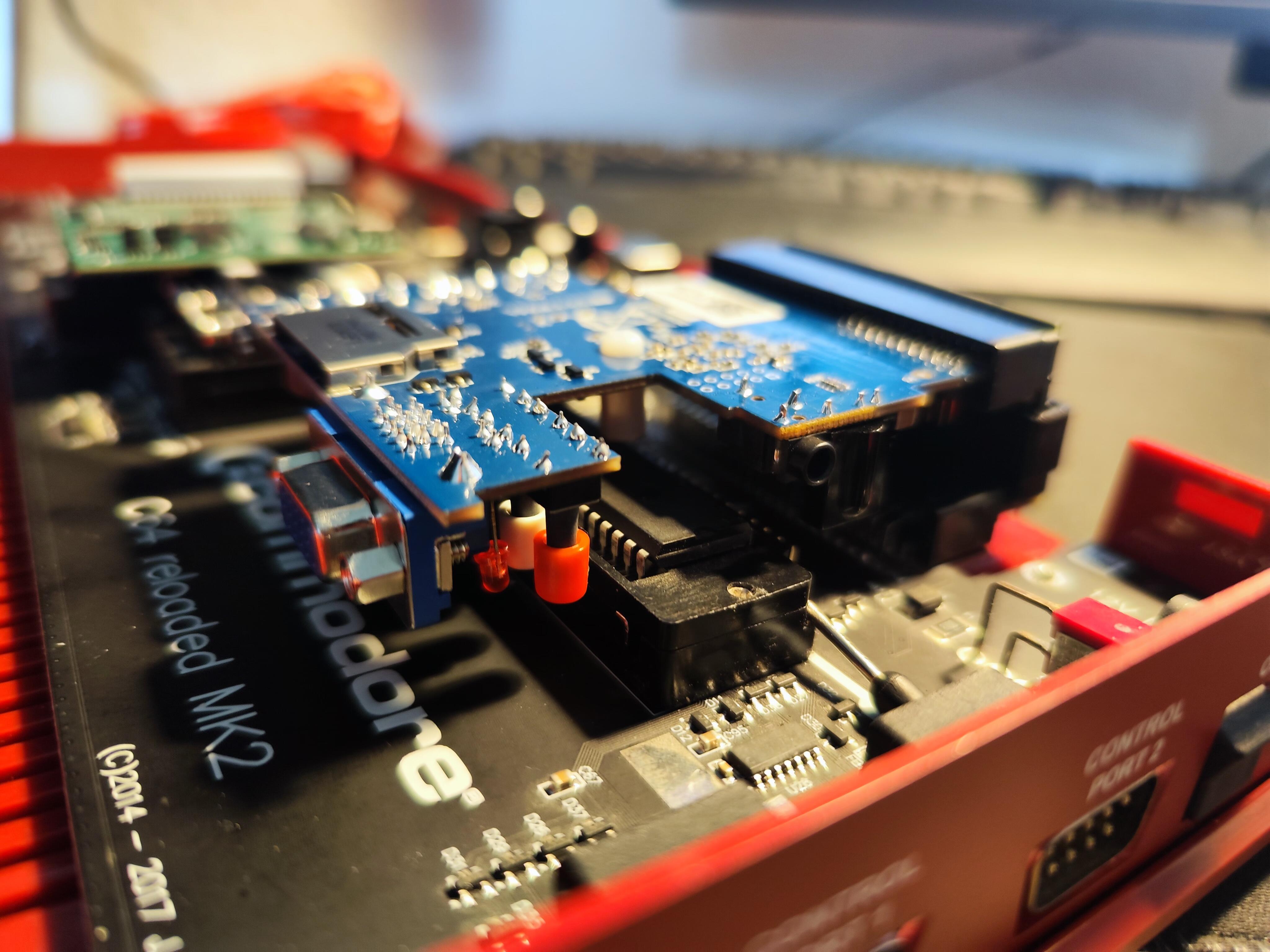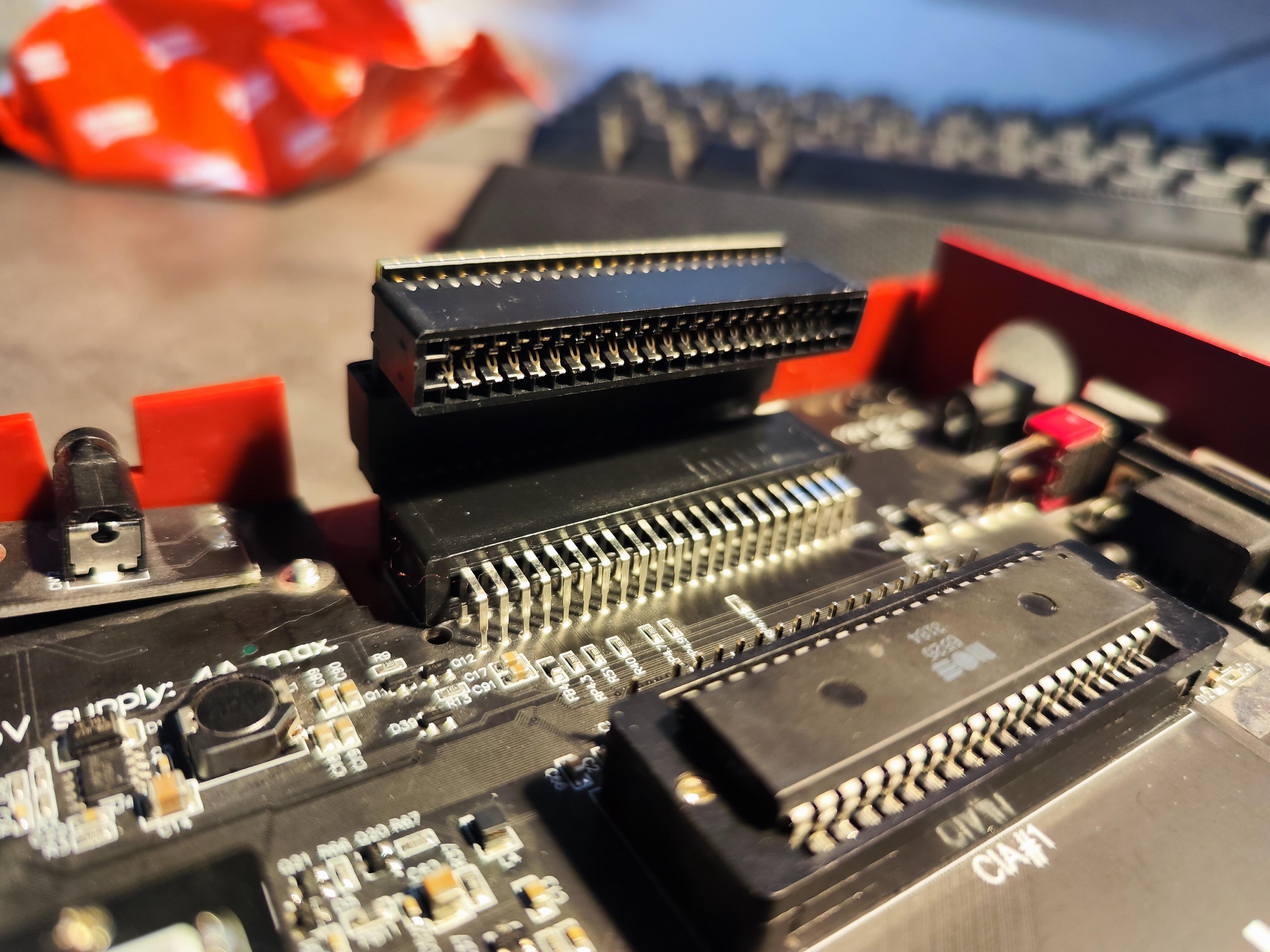 Die Riser 44 wurden eingekürzt und 44 Pin Buchsen eingelötet.