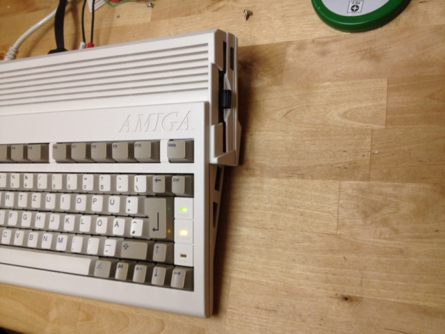 Diese Gotek in einen A600 einbauen ist ganz schön frickelig! da muss man echt auf den Millimeter genau das A600 Gehäuse platzieren das man auch das Gehäuse zubekommt und den USB Stick durch den Disketten-Slot geschoben bekommt (das Laufwerk muss auch ein wenig angehoben werden ansonsten passt der USB und Disketten-Slot nicht zueinander). Die Schraubenlöcher kann man dabei getrost ignorieren, dass passt hinten und vorne nicht. Ich habe mir so geholfen indem ich Doppelseitiges Klebeband verwendet habe. Das fixiert das Laufwerk soweit und alles ist super