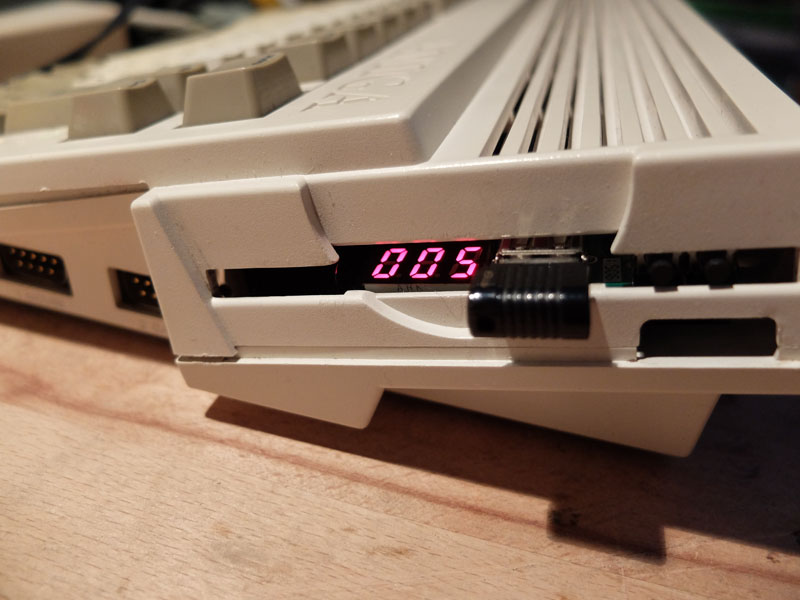 Das Display wird schräg angeklappt eingesetzt, sodass man durch den schmalen Laufwerksspalt auch die Zahlen in kompletter Höhe erkennen kann.