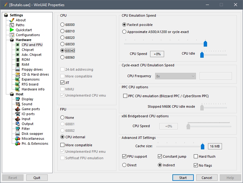 Und dann zunächst WinUAE64 auf folgendes eingestellt: